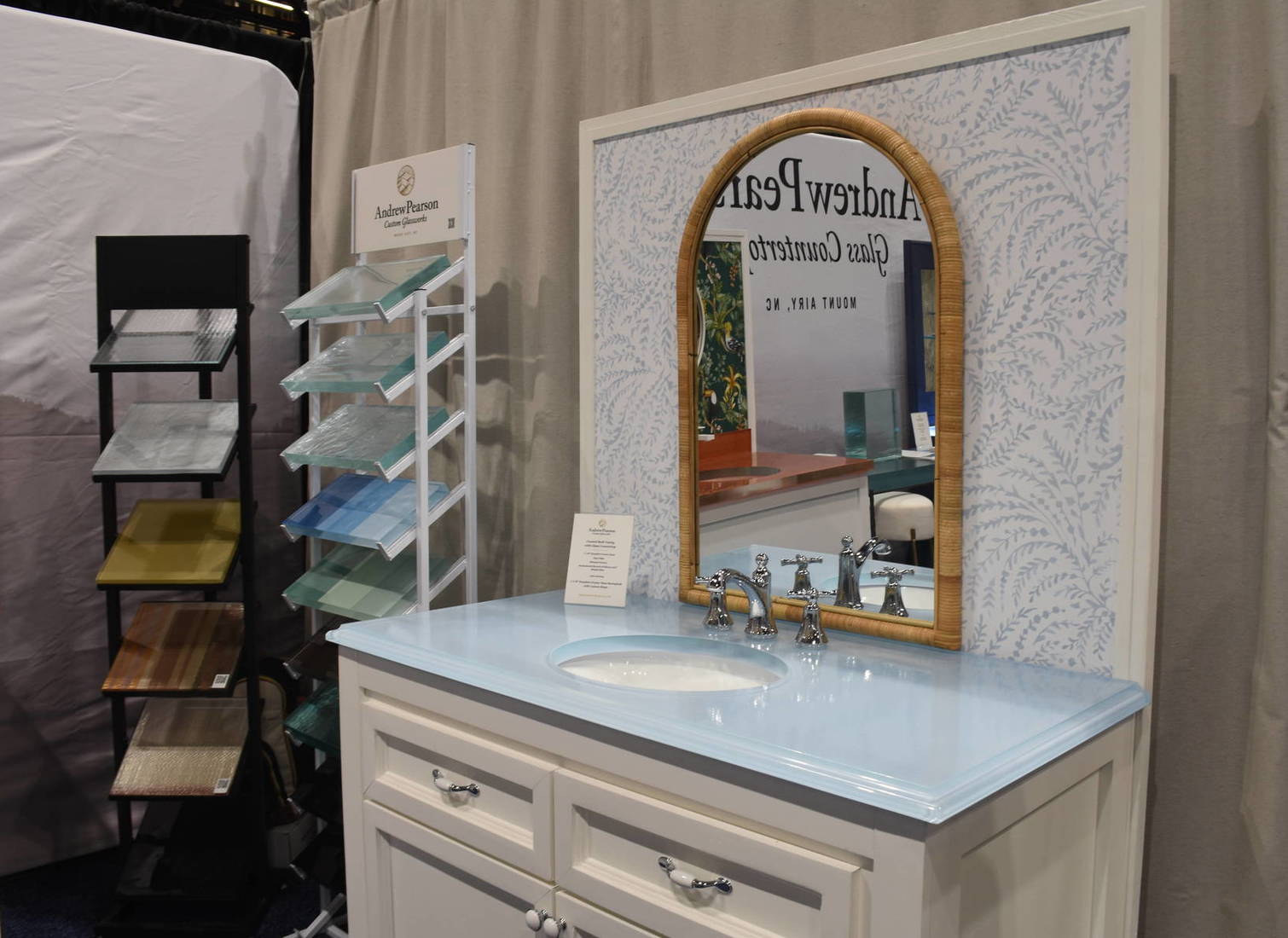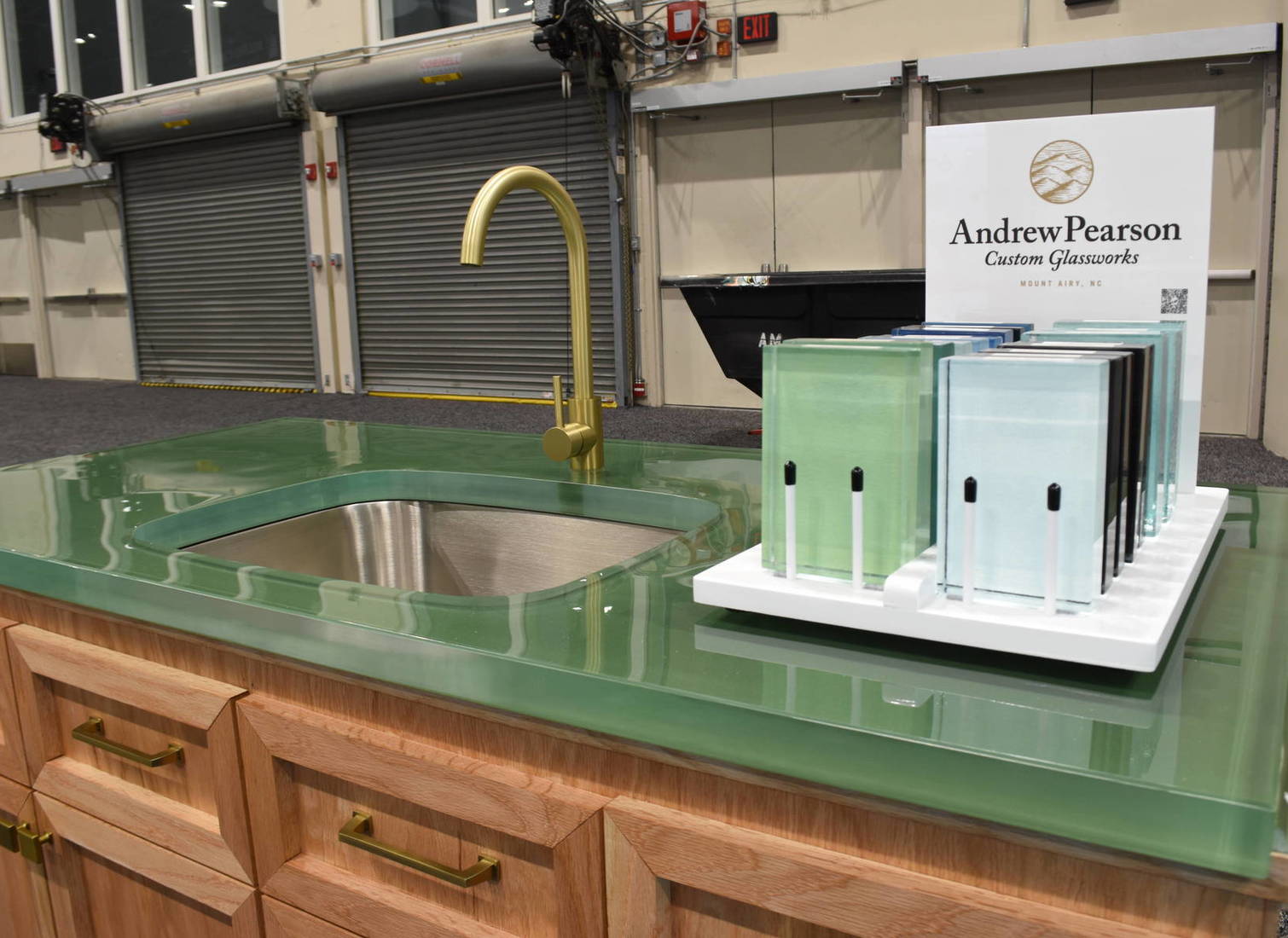 Andrew Pearson collaborates with customers to design luxuriously thick glass countertops for kitchens, baths, restaurants, bars, and conference and reception spaces. Our Fuzion kiln glass showcases our custom glass textures, colors, and edgework. We handcraft all of our premium glass surfaces in Mount Airy, North Carolina.